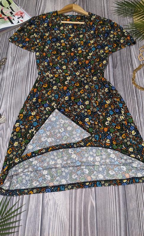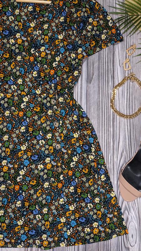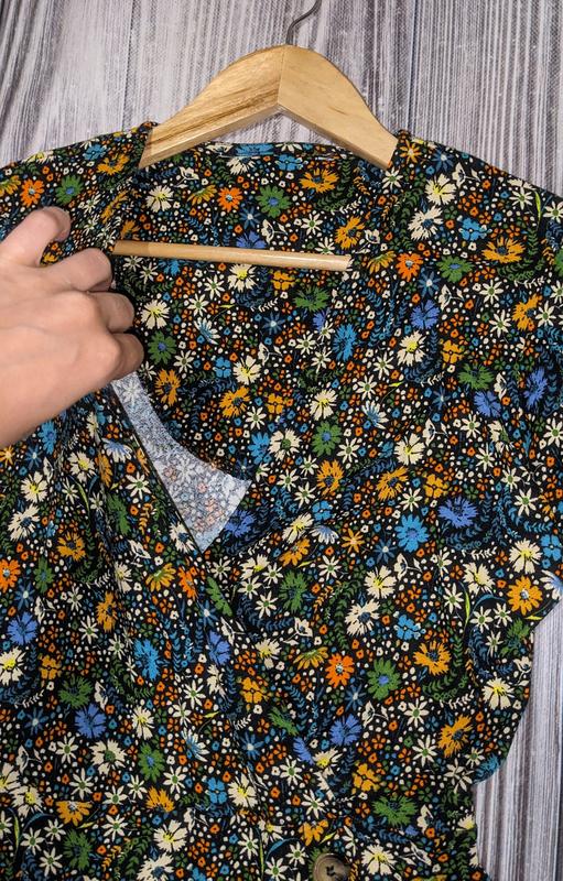 Актуальна якісна сукня . V подібне декольте, рукав короткий, широкий. Крій назапах. Топ сідає по фігурі, спідниця вільно, прикрашена чотирма гудзиками. Приталена, відрізна по талії. Тканина тонка, та м'яка, дуже приємна до тіла, натуральна. Гарно тягнеться, не просвічується.