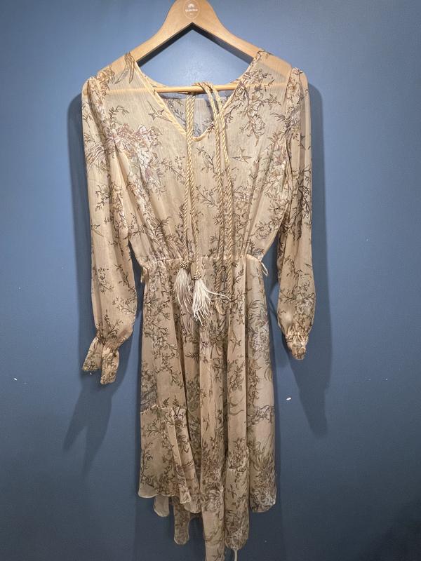 Платье миди, очень красиво подчеркивает фигуру и отлично «садится» благодаря косому крою и резинке на талии. Пасок отделан мягкими перьями 761 и бусинками. К платью прилагается чехол из вискозы нюдового цвета.