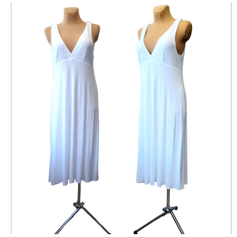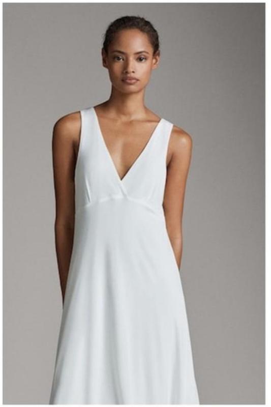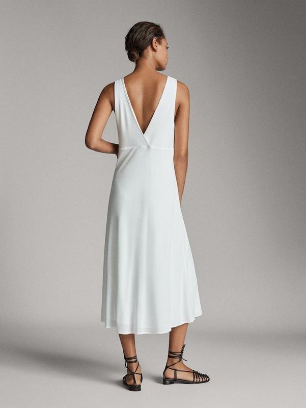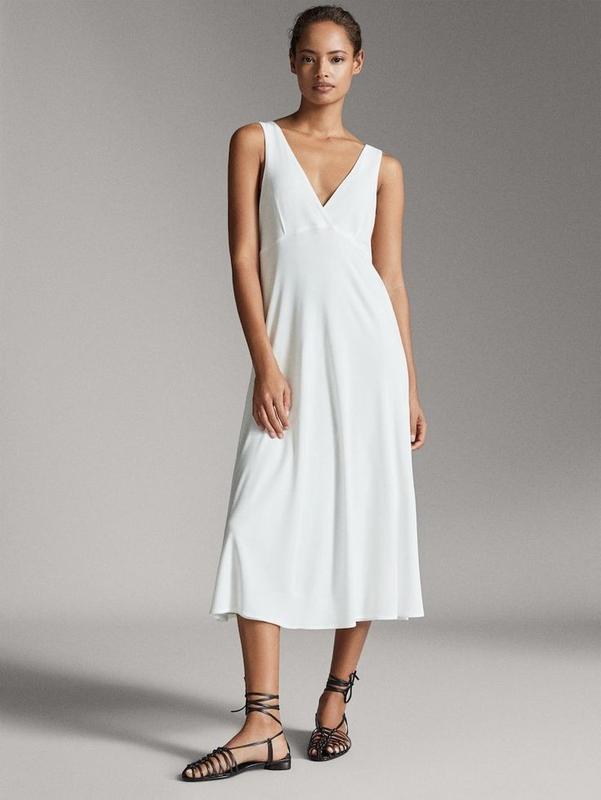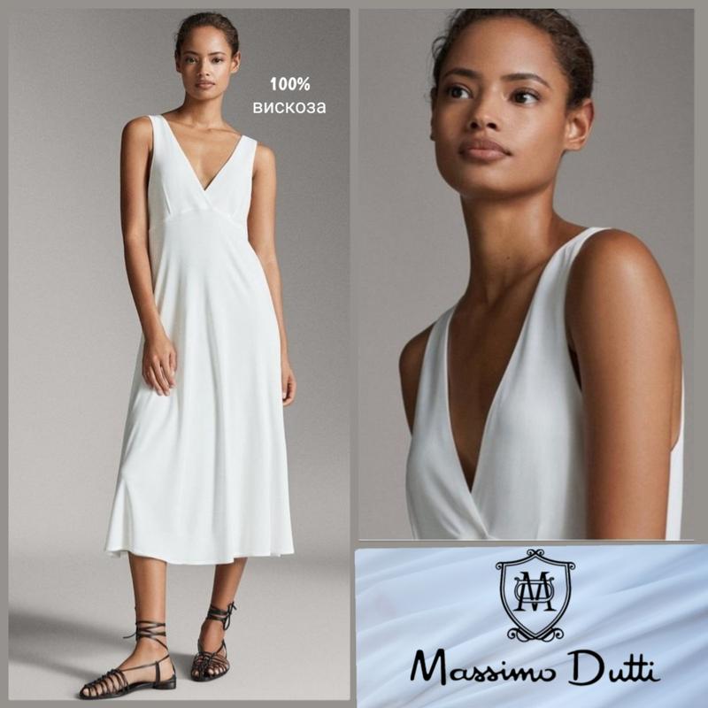 Предлагаю очень красивое бело - снежное платье от Massimo Dutti. Модель с отрезной талией и двойным V-образным вырезом , длинна миди на подкладки (не светиться !!) .