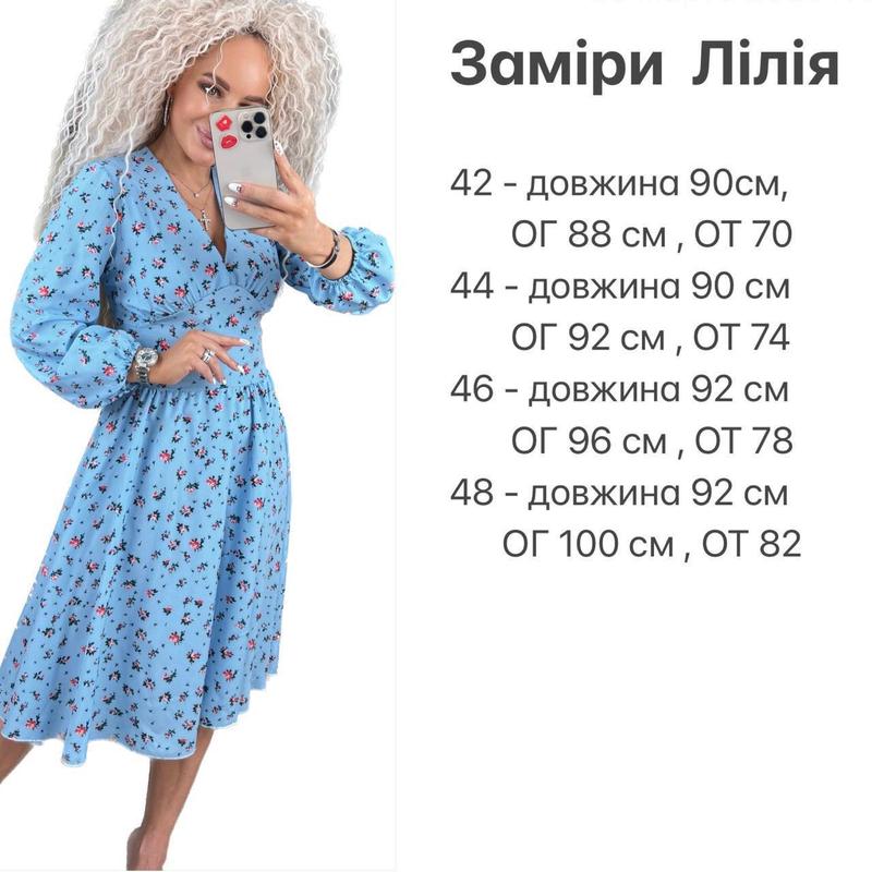 Легка та ніжна сукня ЛіліяНе залишить тебе байдужою і відмінно підійде для весняно-літнього сезонуТканина супер софтРозміри 42,44,46,48560 грн