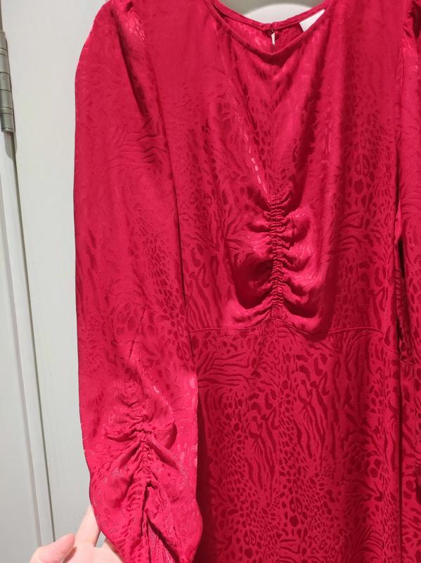 Красное атласное платье zara