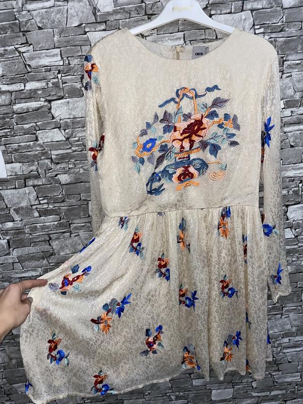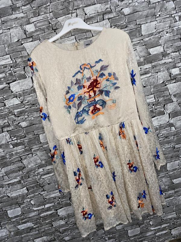 Натуральное люкс платье от asos, принт тигры, кремовый цвет, баска и воротник!