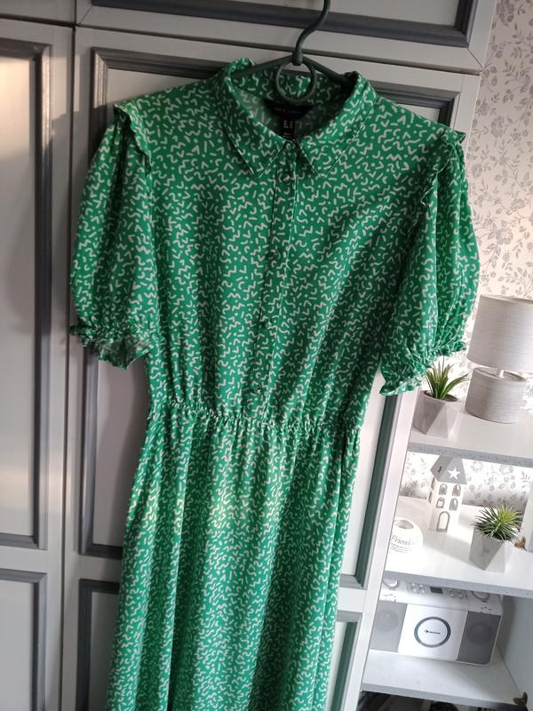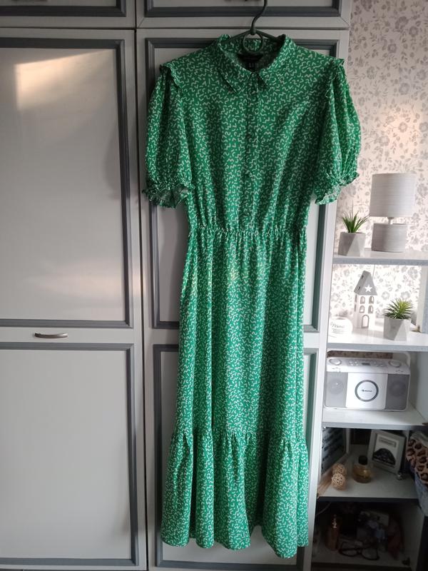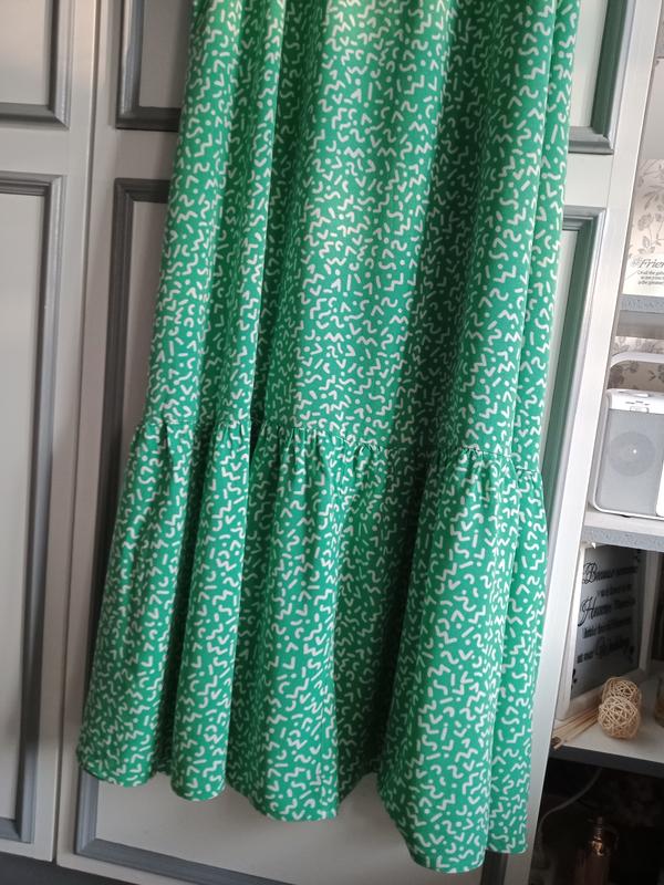 Стильное платье с оборками класса Люкс в идеальном состоянии.По талии резинка,отлично смотрится под ремешок.Размер указан 14.По груди 54По талии резинкаПо бедрам 72(свободно)Длина 42,5-131