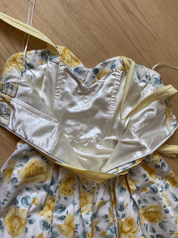 Платье с желтыми розами. Бретели снимаются.На поясе с подюпником.Высота корсета 23 см Юбка 49 от корсетаШирина в талии 35 смШирина груди 37 смЧашка B/C