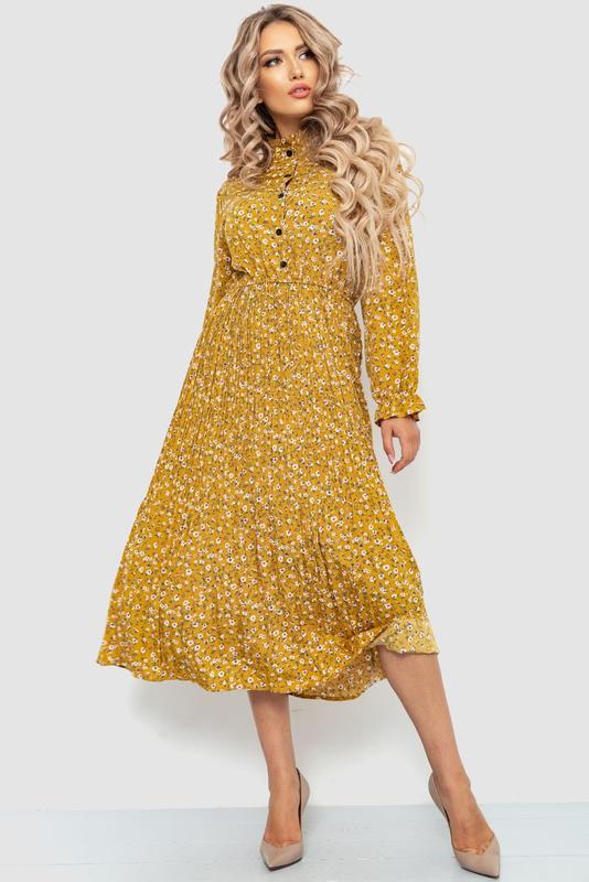 Платье горчичного цвета, длина миди