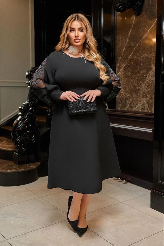 Ткань:костюмка диагональ, на рукавах - аппликация из страз,Длина:112 смДлина рукава:59 смРост модели:170 смАксессуары:платье с поясомДополнительная информация:по бокам карманы, по спинке потайная молния,