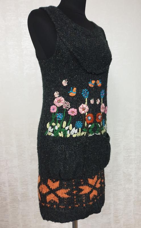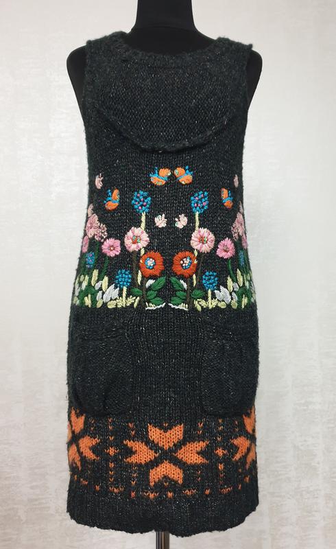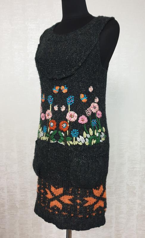 Эффектное вязаное платье-сарафан от мегапопулярного испанского молодежного бренда модной одежды Desigual, что в переводе с испанского языка означает "уникальный". Буйство красок, испанская фиеста, бесконечный праздник и выгодное море – все это нашло отражение в наряде одежды Desigual.