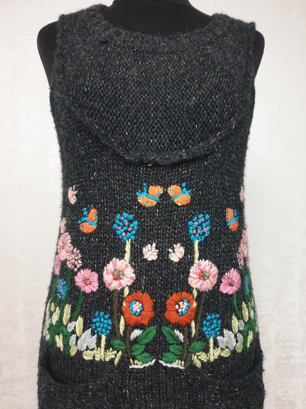 Изделие эффектно декорировано вышивкой. Под сарафан можно надевать гольф, свитер, лонгслив и др.