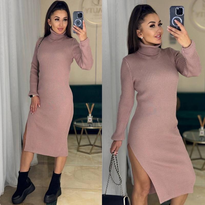 Вязаное платье- гольф в длине меди😍 Модель: 117 osip Размер: oversize 42/48 Двойная вязка Акрил+вовна Цвета: черный, пудра, серый, карамель, бутылка 🎀 Платье с высоким воротником. Изделие выполнено из мягкой, приятной к телу пряжи с содержанием шерсти и акрила. Длина миди. Крой приталенный. Длинные узкие рукава. С боку декоративный разрез 💕 Замеры: ОГ:90/115 ОС:90/115 ДОВЖИНА РУКАВА:64 см ДОВЖИНА СУКНИ: 120 СМ (ДУЖЕ ДОБРЕ ТЯГНЕТЬСЯ)