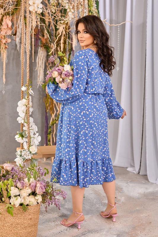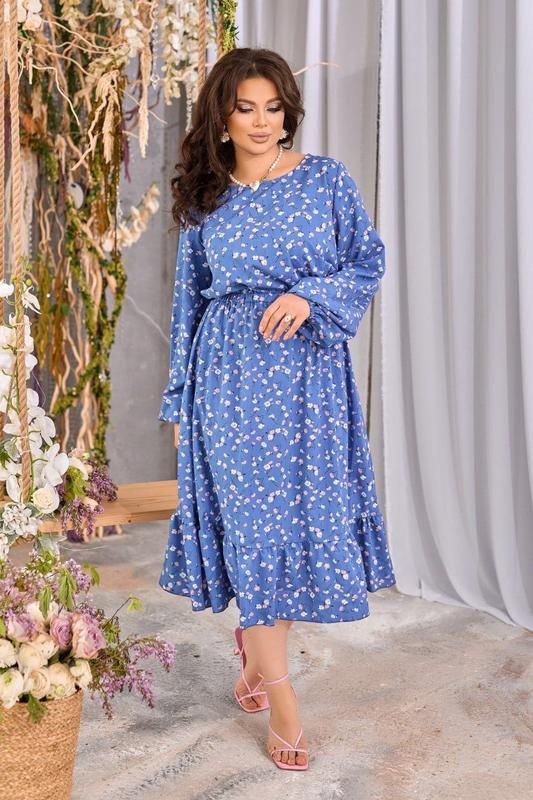 Платье, подчеркивающее ваш силуэт и женственность, приталено на резинке, по низу оборка. Рукав немного расширен к низу, внизу на резинке.