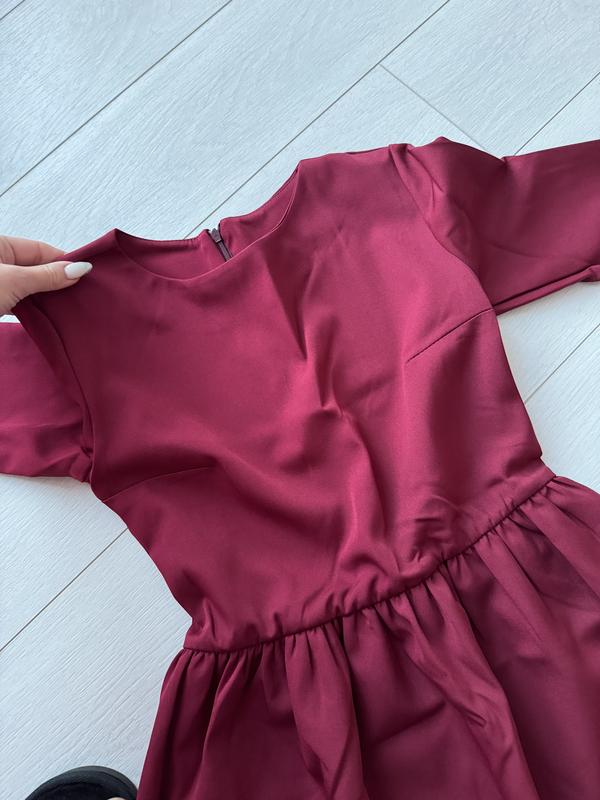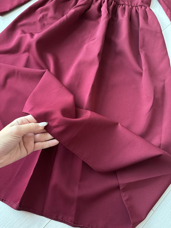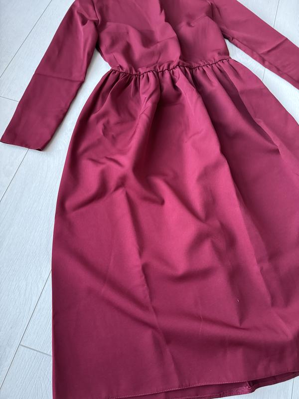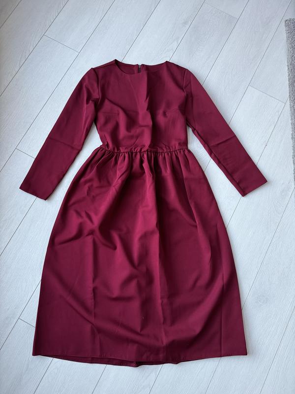 отличное состояние, сзади змейка, замеры вличку, плотная, приятная ткань, размер хс-с, длина миди, рукав 3/4, красивый винный цвет