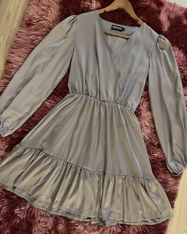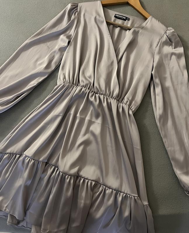 Новое платье не носилось в идеальном состоянии, цвет бледно фиолетовый, платье с глубоким вырезом, длина до колена, идет на размер xs/s, рукав - 58 см, длина платья -83 см, талия на резинке. Ткань очень легкая и приятная к телу, состав ткани к сожалению не знаю, но на ощупь приятная и шелковистая