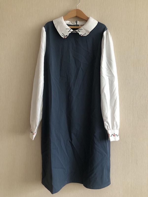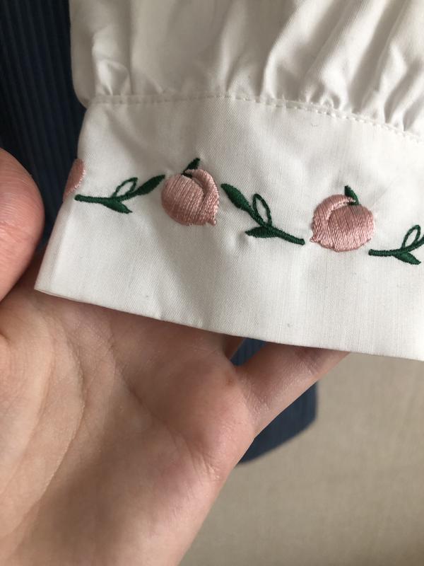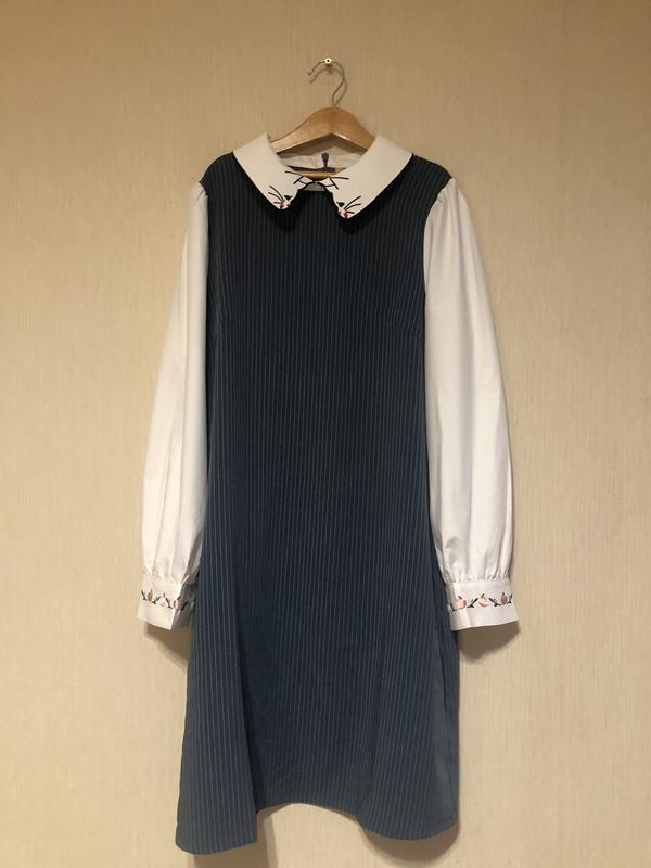 Платье с вышивкой в виде котиков и персиков, средней длины, нарядное и очень красивое