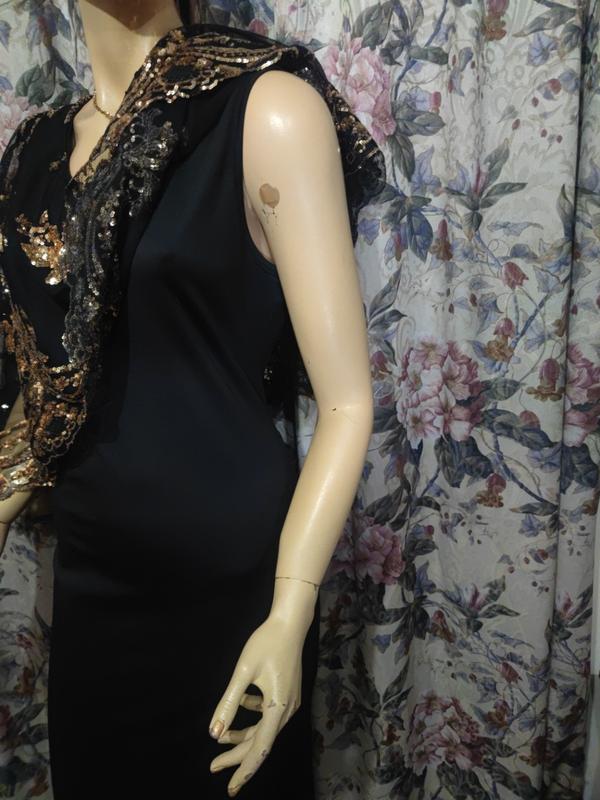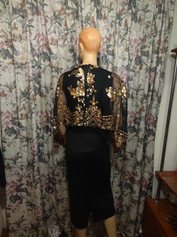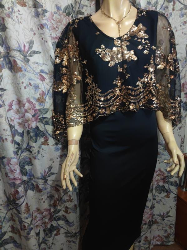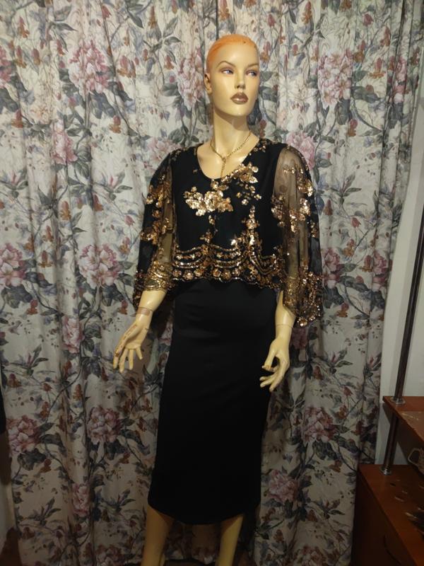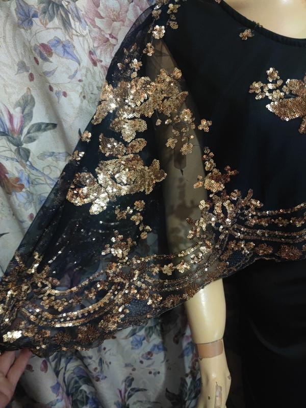 длина -125;пог-54; плечи -38; пройма-25;не плечах накидка из сетки с пайетками;талия-50*60;бедра-60*70; сзади молния;разрез-20см.