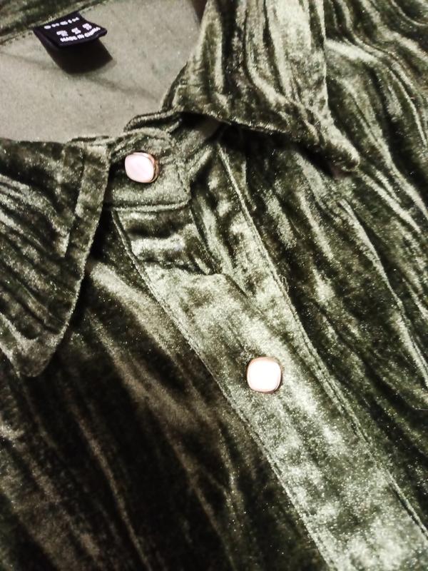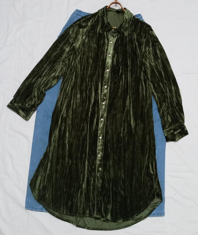 Очень красивый цвет зеленого мха, невероятно переливается. Крой в большинстве случаев прямой, стиль платья 👗 сорочка. Гудзики рабочие. Платье не тонкое, среднее. Хорошо держит форму.