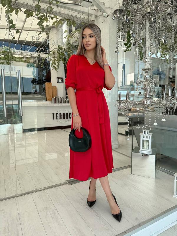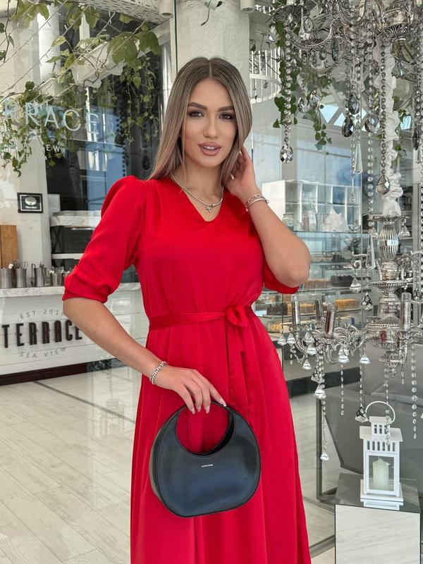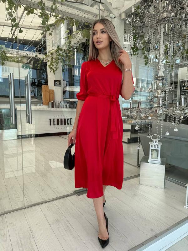 Платье#393Размеры:42-44,46-48Ткань: Шелк арманный.Цвет: красный, бежевый, черный, зеленый, синий.Пояс в комплекте