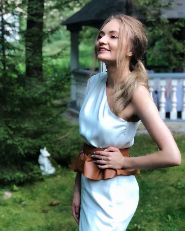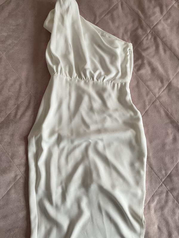 Молочна, на першому фото через освітлення колір інший.В ідеальному стані, одягала один раз (дивіться інший мій одяг, є багато речей які одягались 1-2 рази)Пояс-баска не йде до плаття, можна придбати окремо.Обхват пояса - 65см.