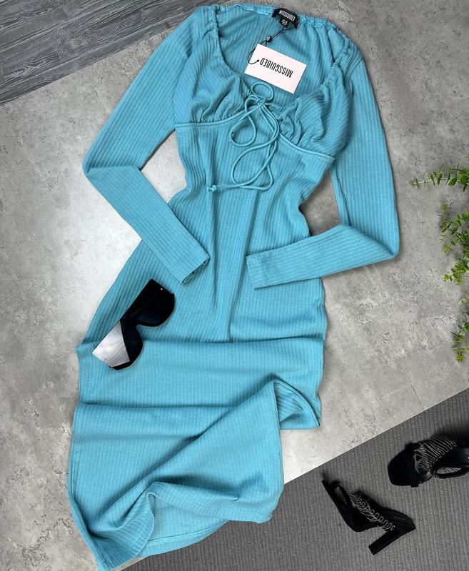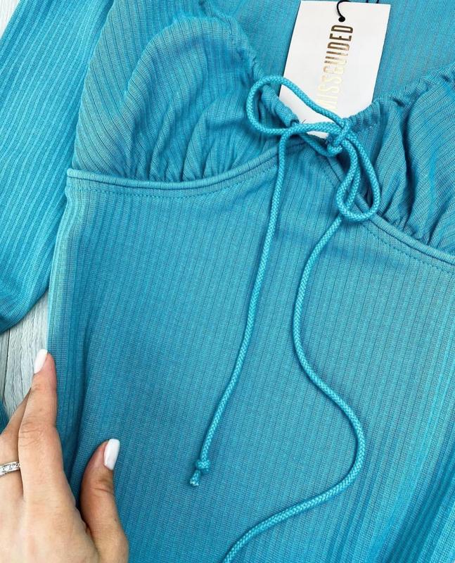 Бірюзова сукня Missguided, тканина щільний трикотаж ( в рубчик, тягнеться) в складі 45% бавовна 5% еластан 50% полієстер обʼєм ширини плечей та виріз на грудях регулюється завʼязуванням,