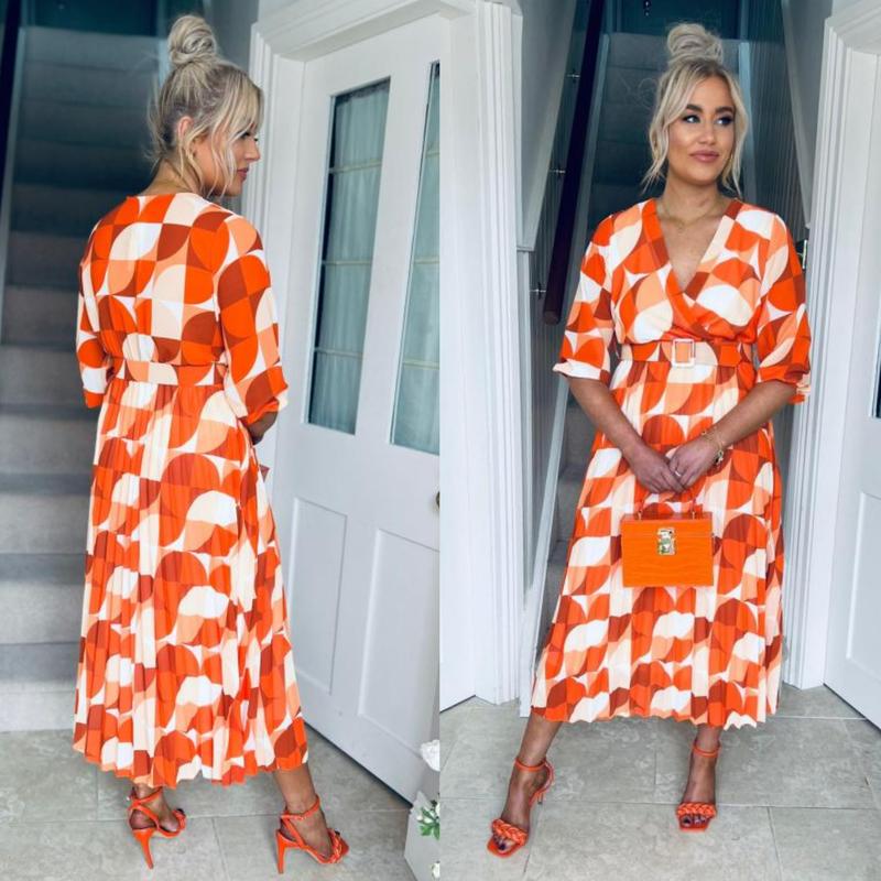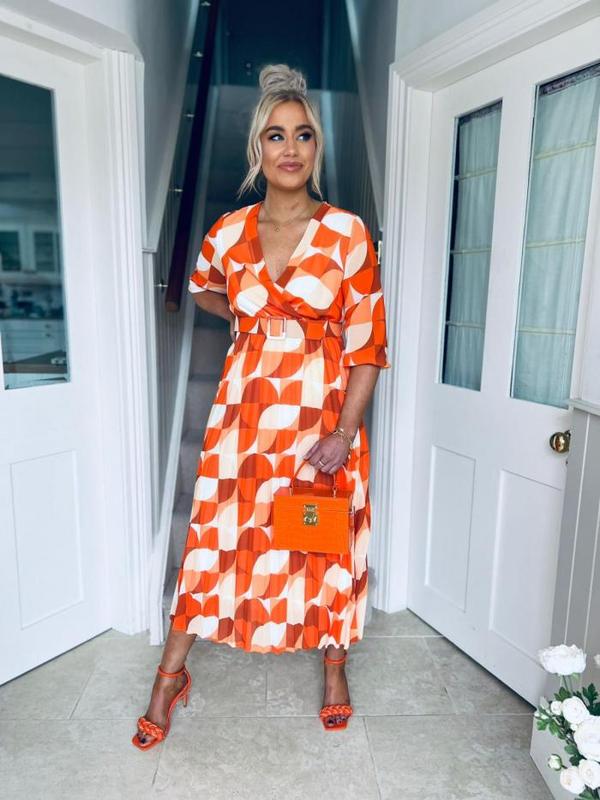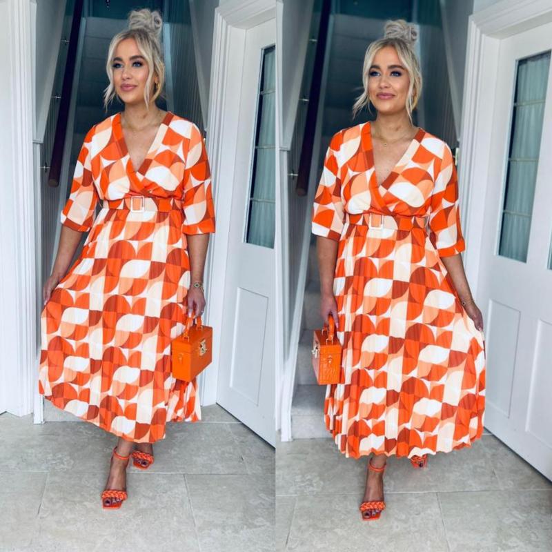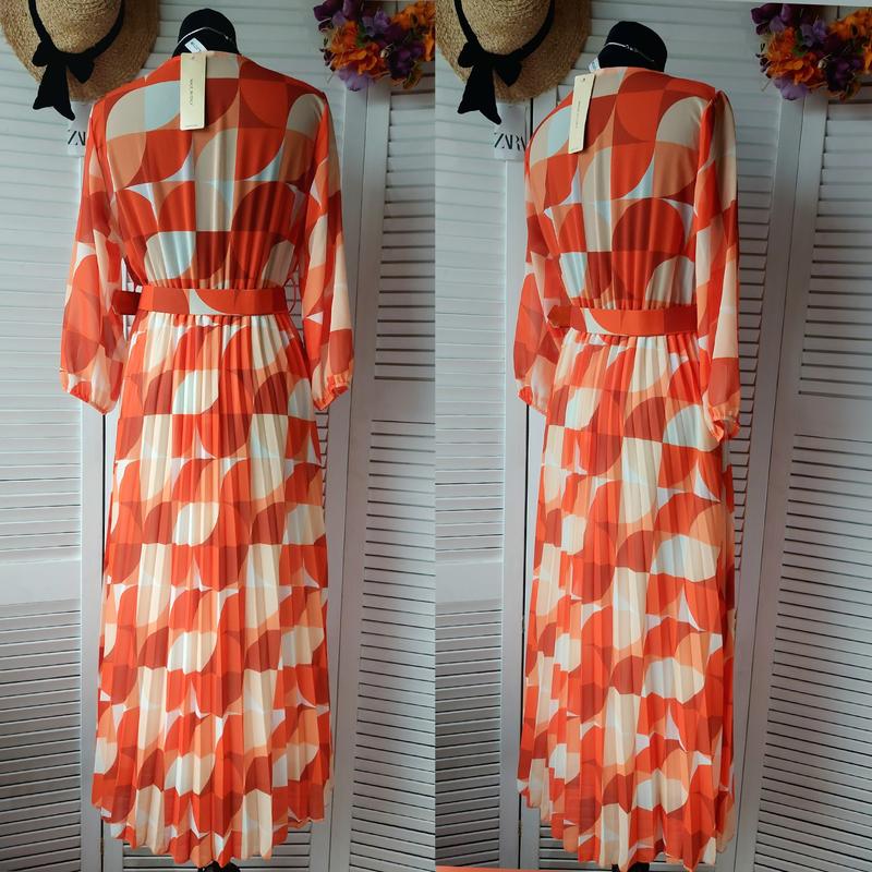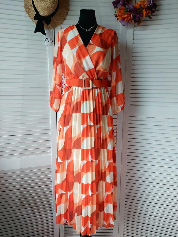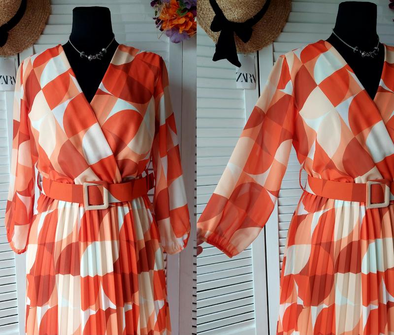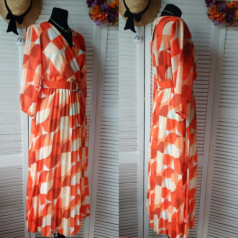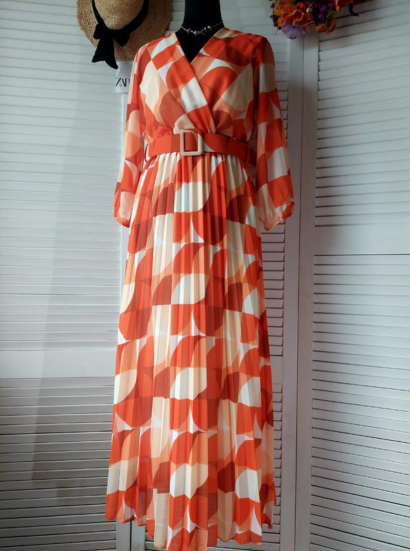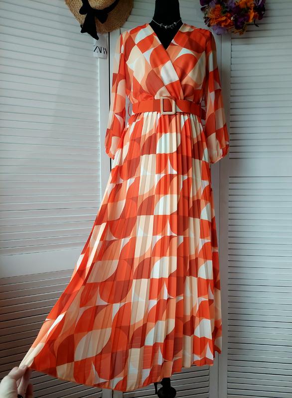 Платье миди длинное оранжевое плиссированное плиссе с геометрическим принтом Italy 🇮🇹