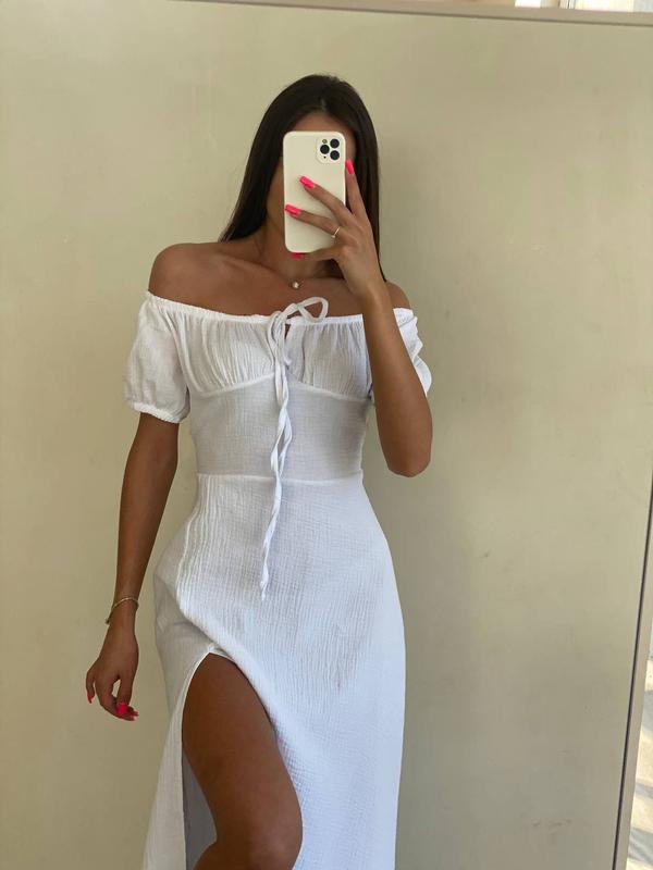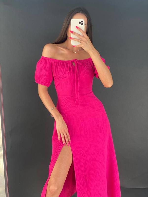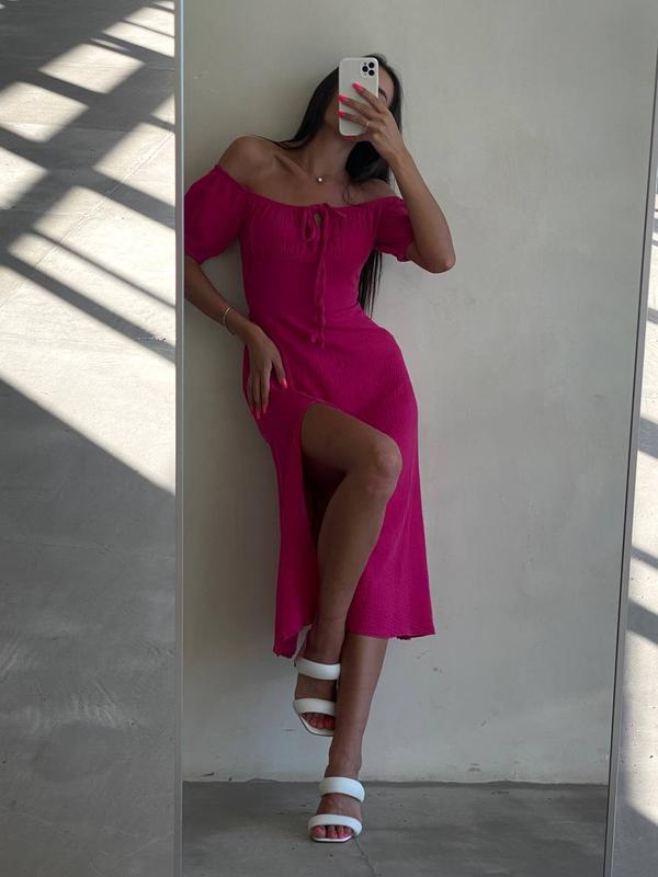💬Невероятно женственное платье миди с разрезом и эффектным бюстом💔