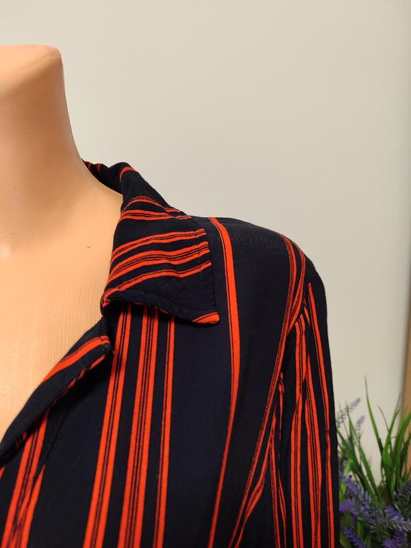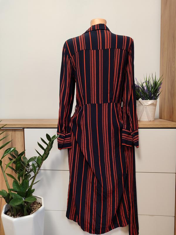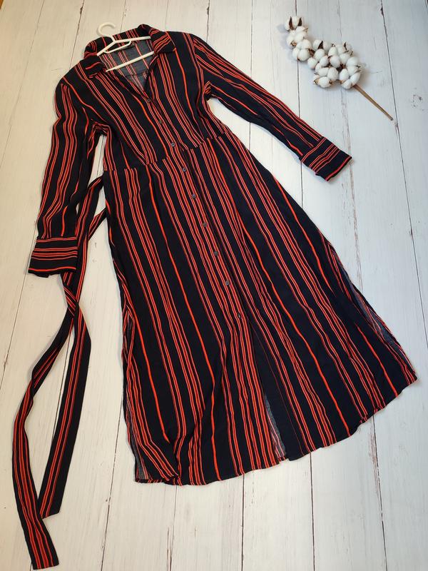 Эффектно смотрятся коралловые полоска на темно синем фоне, защелкивается на пуговицы, имеет поясок! Длина 124, ПОГ 48, ПТ 38, ПОБ 53.Подписывайтесь ко мне, есть много хороших вещей и обновление товара почти через день!
