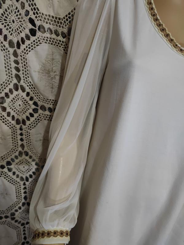 длина -85;пог-50; плечи -40;рукав-67, прозрачный;талия-52; бедра -60;цвет молочный.