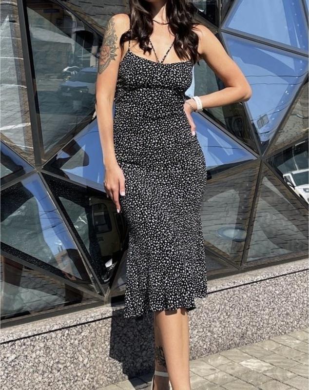 Платье сарафан миди с разрезом принт софт с красивой спинкой
