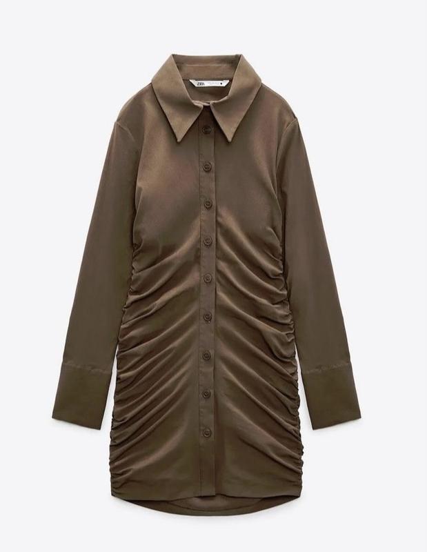 шоколадное стильное платье рубашка Zara, р.M-XLПо бірці р.XL, але можна на М, L, XLВискоза, красиво тянется Сток, нове, без етикетки ПОГ 49-57Рукав 61 смПОБ 50-60 смДлина 104