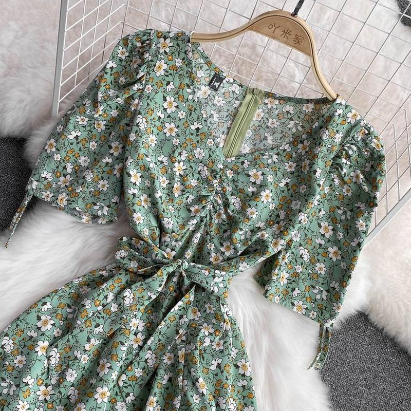 Женское летнее обтягивающее платье миди со шнуровкой на спине в цветочки, в цветы штапель