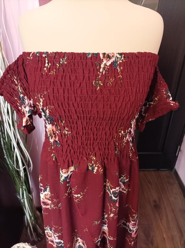 Красивое платье миди с разрезом в принт s m