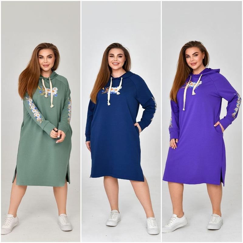 Модель 4057 Платье спорт Платье с разрезами побокам, с капюшоном Превосходно разработанное лекало и качественный пошив Ткань: Турецкая двухнитка Размер: 52, 54, 56, 58 Замеры 52: ОГ-122, ОБ-128, Длина-107, Дл/рук- 75 54: ОГ-126, ОБ-132, Длина-107, Дл/рук- 75 56: ОГ-130, ОБ-136, Длина-109, Дл/рук- 77 58: ОГ-134, ОБ-140, Длина-109, Дл/рук- 77