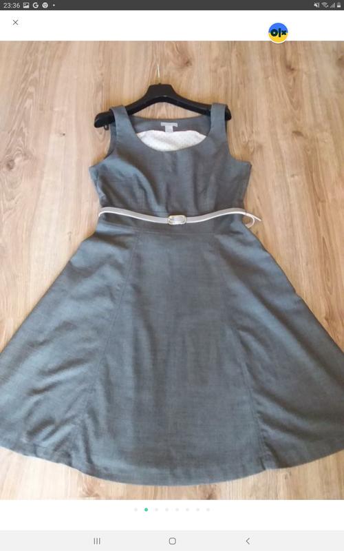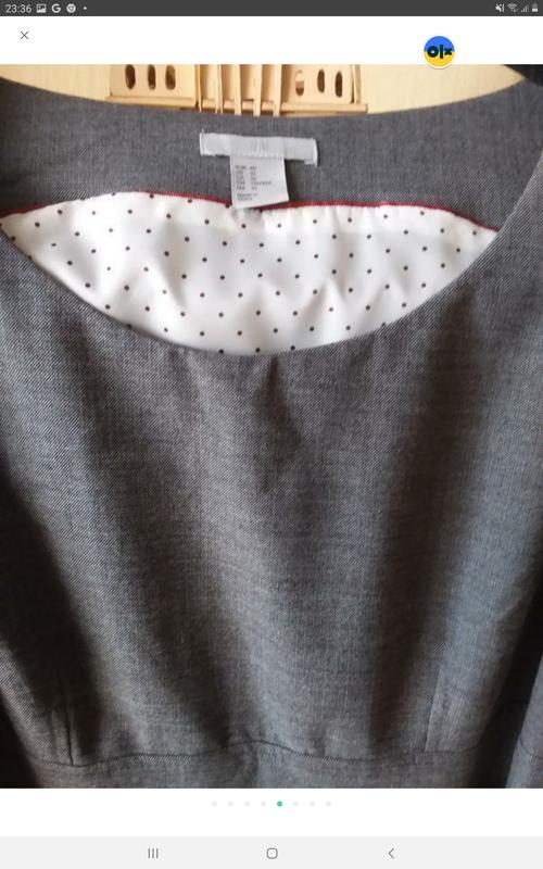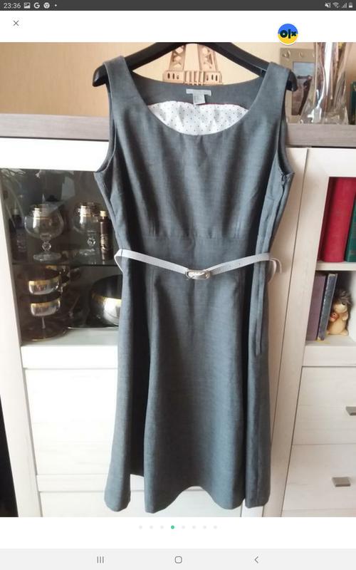 Фирменное серое платье H&M, приятное к телу, танкетка подчеркивает талию, с боковой оцепью удобной молнией-застежкой и веселой подкладой в горошек. Можно надевать как сарафан под гольф. ПOT 40см,дл.изд.92см. Размер наш 46-48