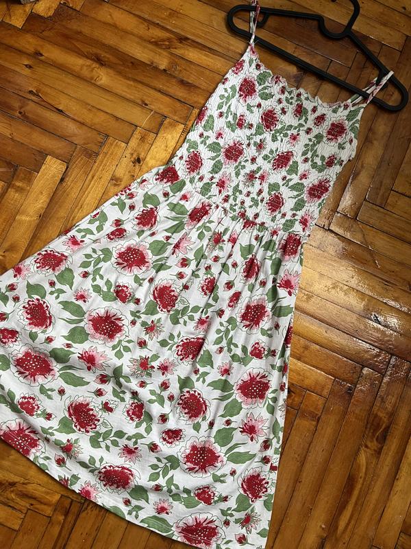 Платье в цветочный принт. Верх на резинке, бретели регулируются. Дополнительные фото и замеры запить в уведомлении.