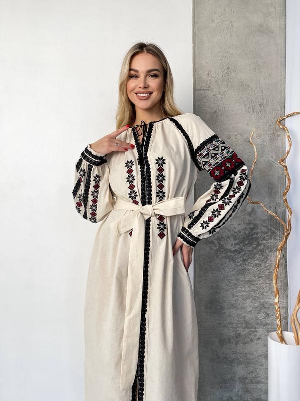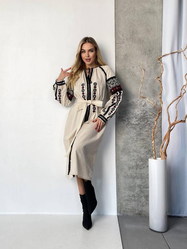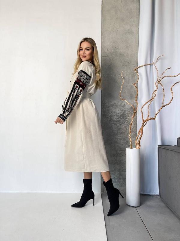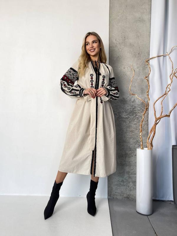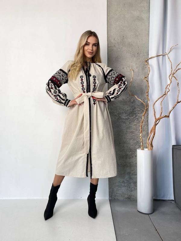 Колоритное платье миди с вышивкой, украинное платье вышиванка, этно платье миди с вышивкой