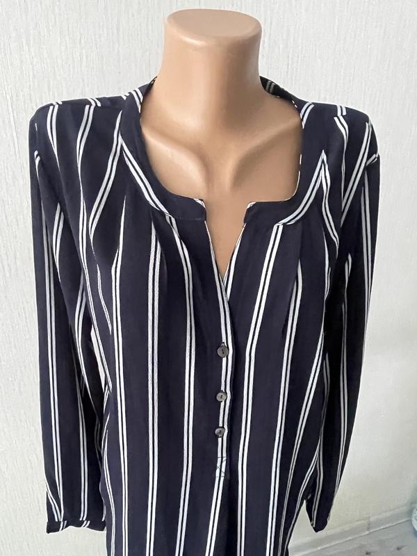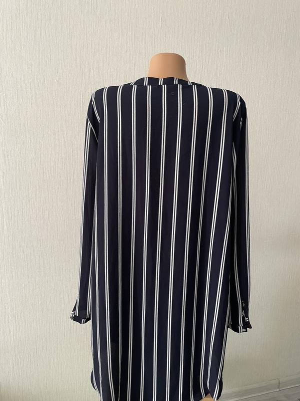 Платье в полоску, отлично смотрится на фигуре, добавляет роста. Идеальные лекала, что делает платье очень комфортным. Стан нового.
