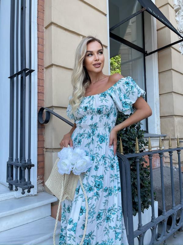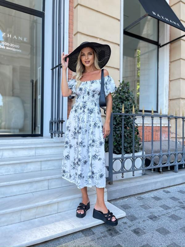 Легкое и очень воздушное платье с открытыми плечами.