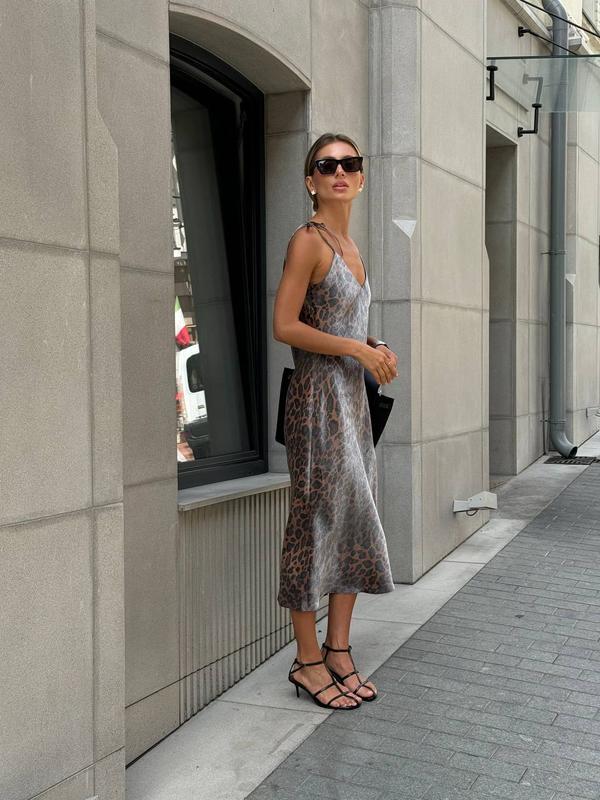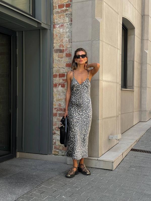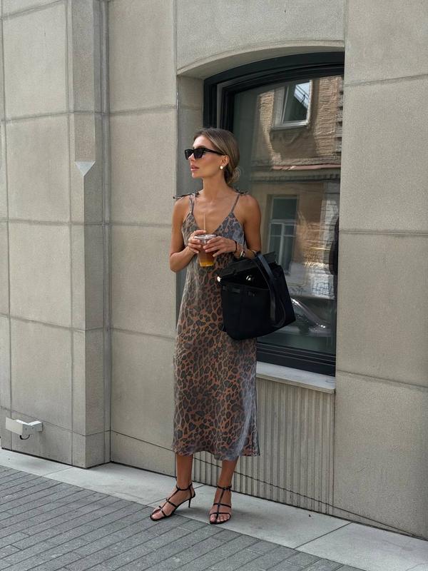 Откройте для себя стильное и комфортное платье-комбинацию с трендовым леопардовым принтом. Мягкая ткань, нежные бретели и свободный крой обеспечат комфорт и элегантность на каждый день.