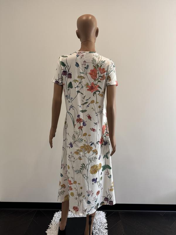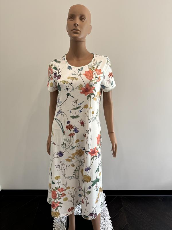 Белое платье,цветочный принт,миди
