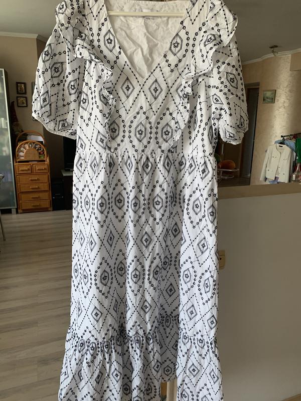 Шикарное летнее платье из прошвы. Состояние нового, но нет бирки. Длина 132,пог 52, пот 49. Бедра свободного кроя