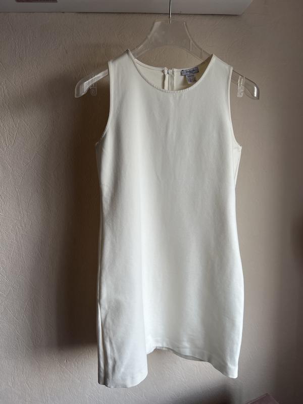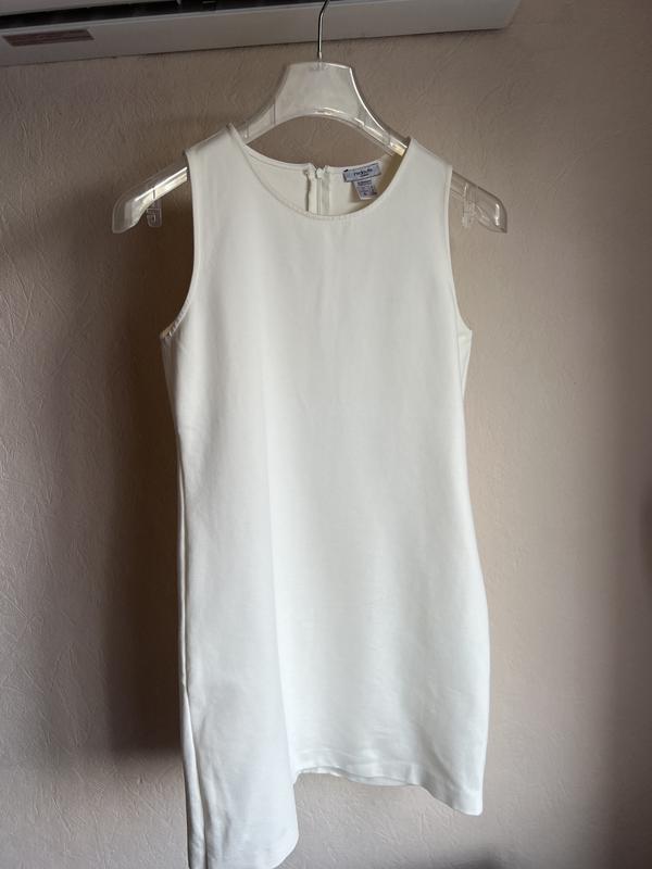 Летнее платье , плотный трикотаж. Красивый крой, подчеркивает фигуру. Состояние идеальное. Цвет молочный. Размер М.Плечи-30Под рукавами-46Талия-45Бедра-52Длина-85