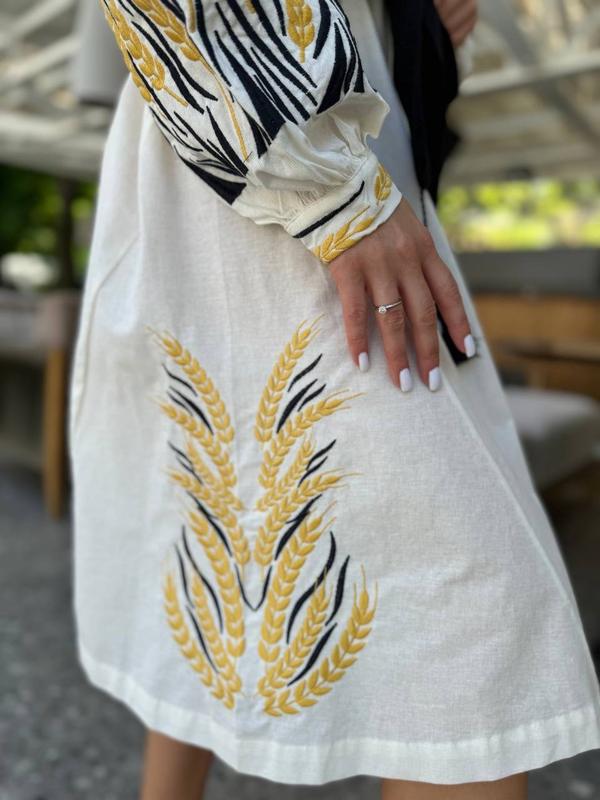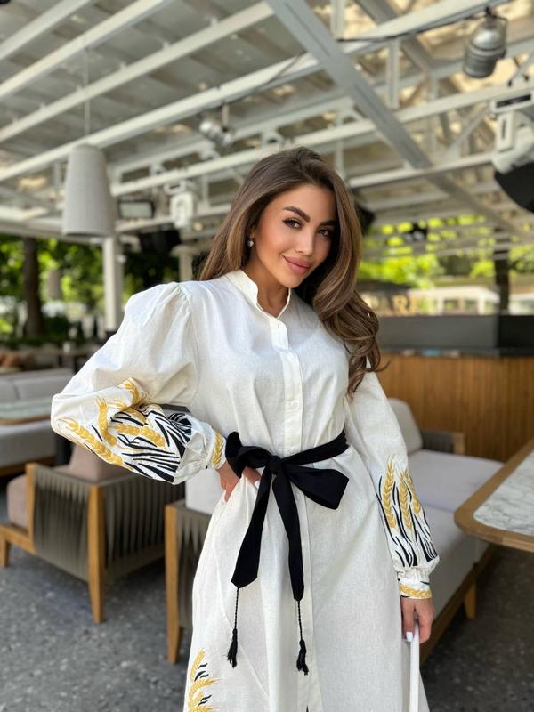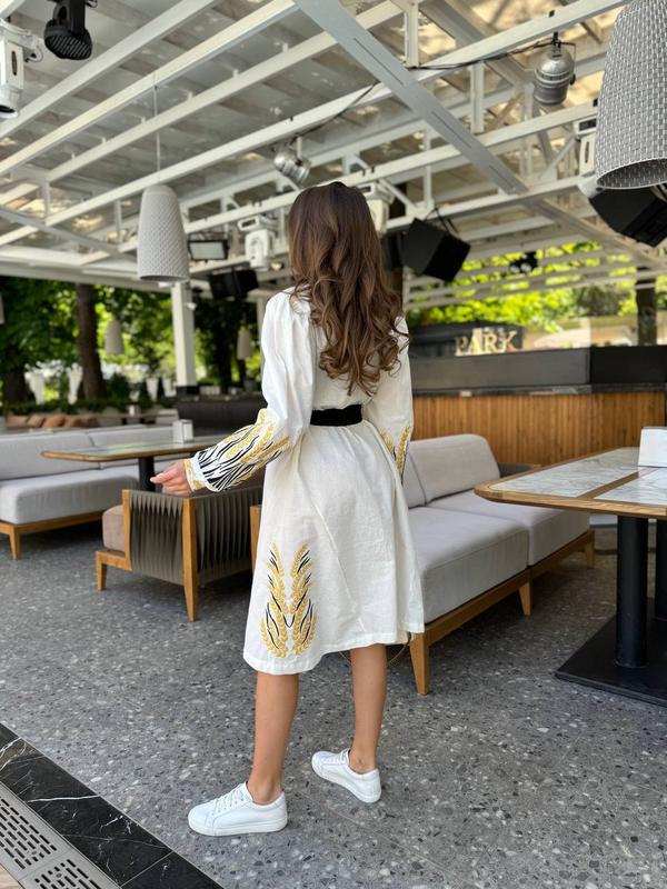 Вышитое платье с колоссем - идеально комбинируется как со спортивной обувью, так и с каблуком.