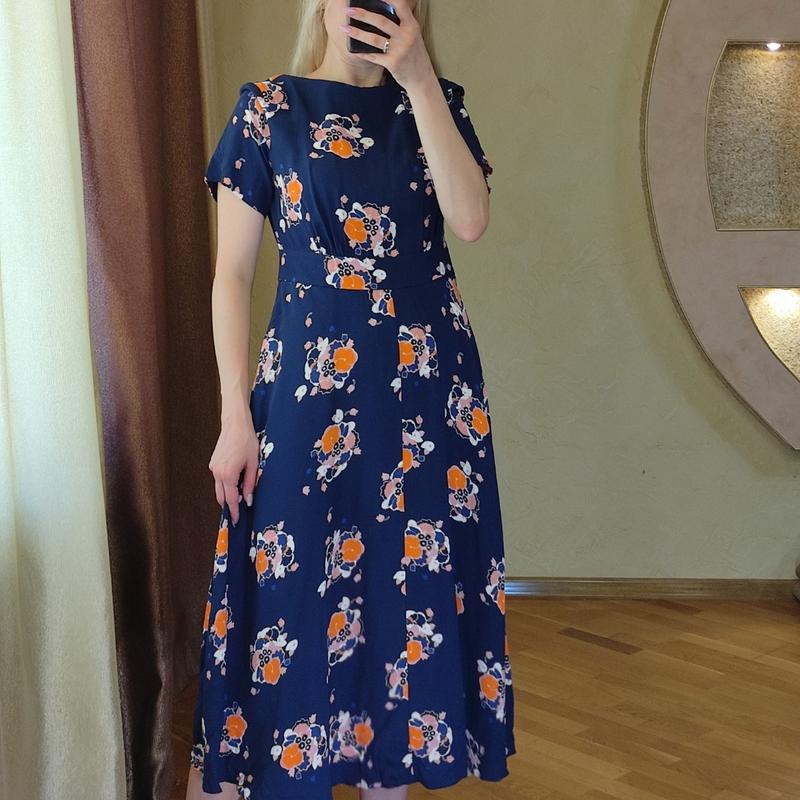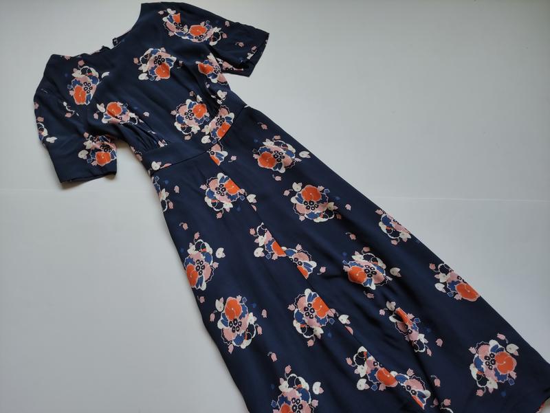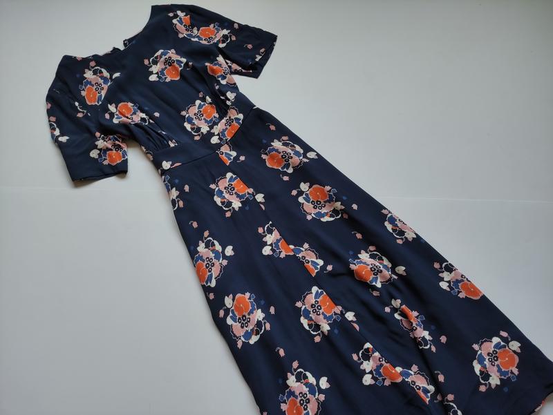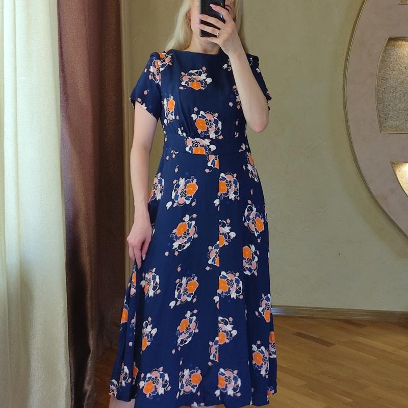 Платье миди с цветочным принтом Размер указанный 12Лучше подойдет на МПОГ - 47-49,ПОТ - 38,ПОБ -свободно.Длина 125.100% вискоза