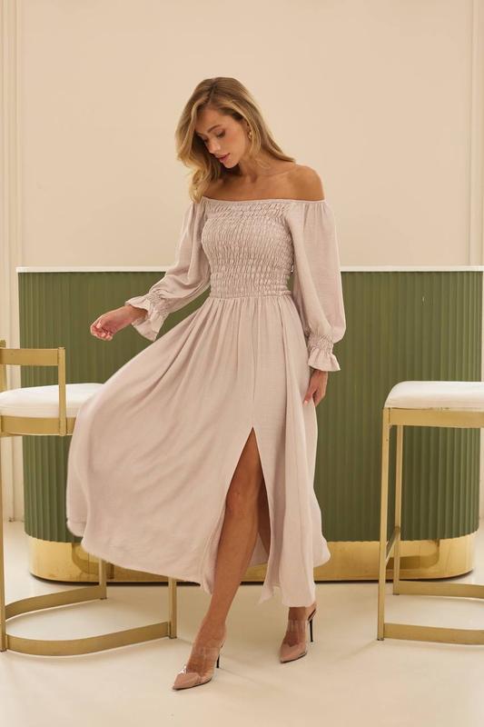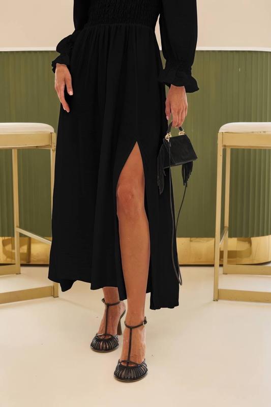 Идеальное легкое платье на резиночке, с разрезом на ноге🥰