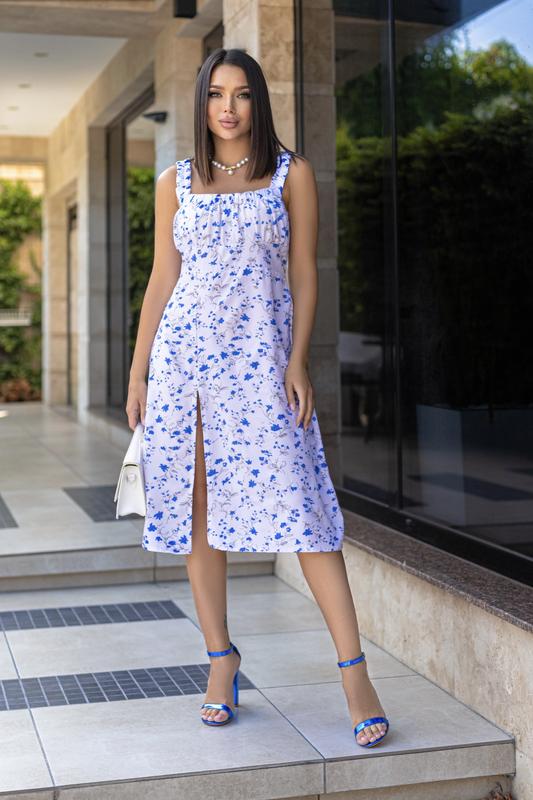 Представляем вам нашу волшебную летнюю новинку - платье миди с разрезом. Это платье выгодно подчеркивает женственность форм, а цветочный принт ткани добавляет образу нежности и романтики