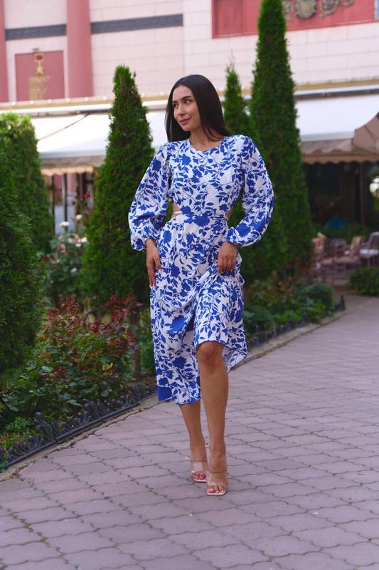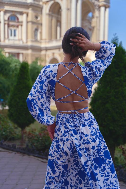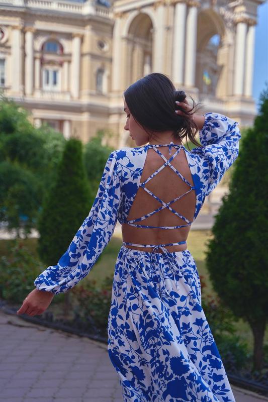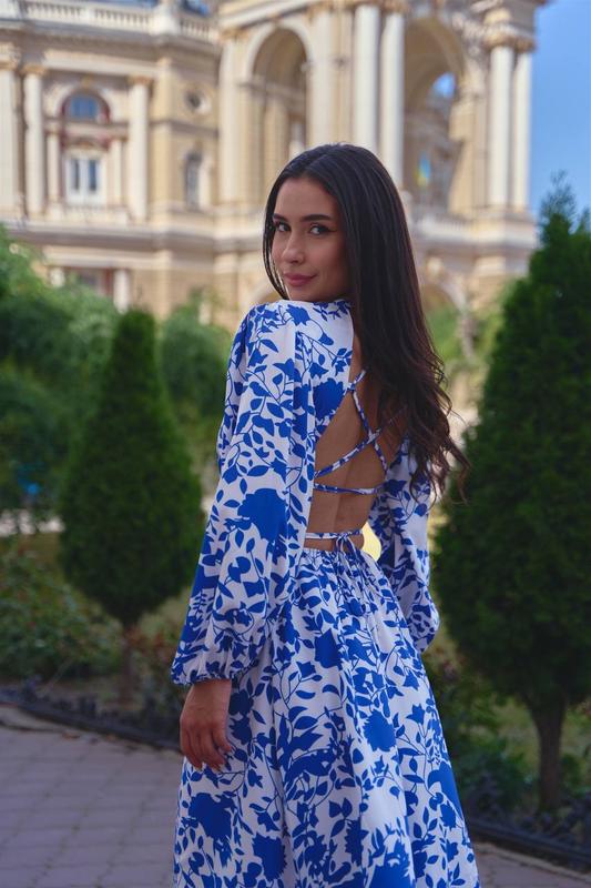 Хорошее платье на любимое событие. Легкая и удобная. Спинка открытая и ругеляется лентой. Длину рукава можно регулировать благодаря резинке.