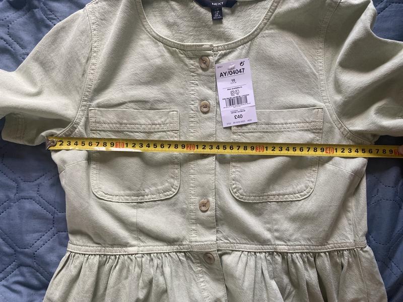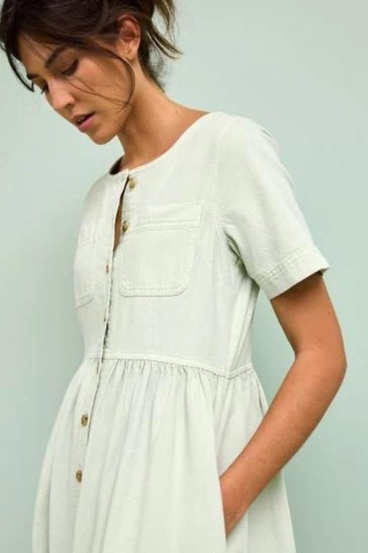 Джинсовое платье Next очень приятного зеленоватого оттенка, имеет кармашки