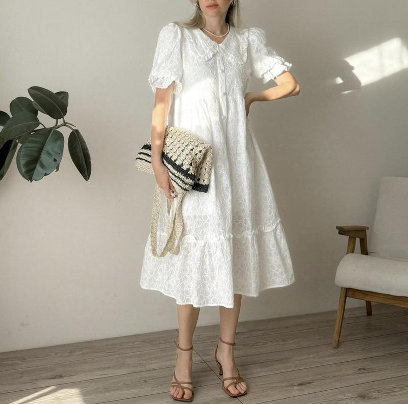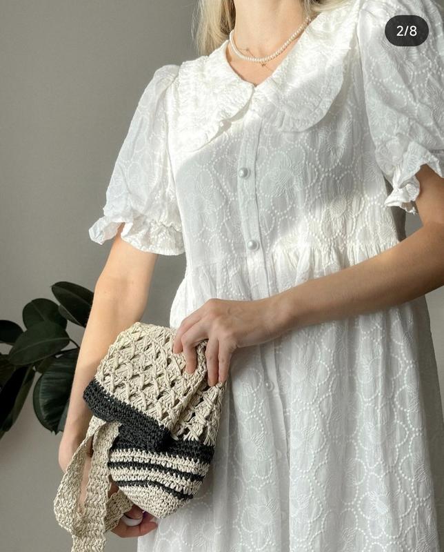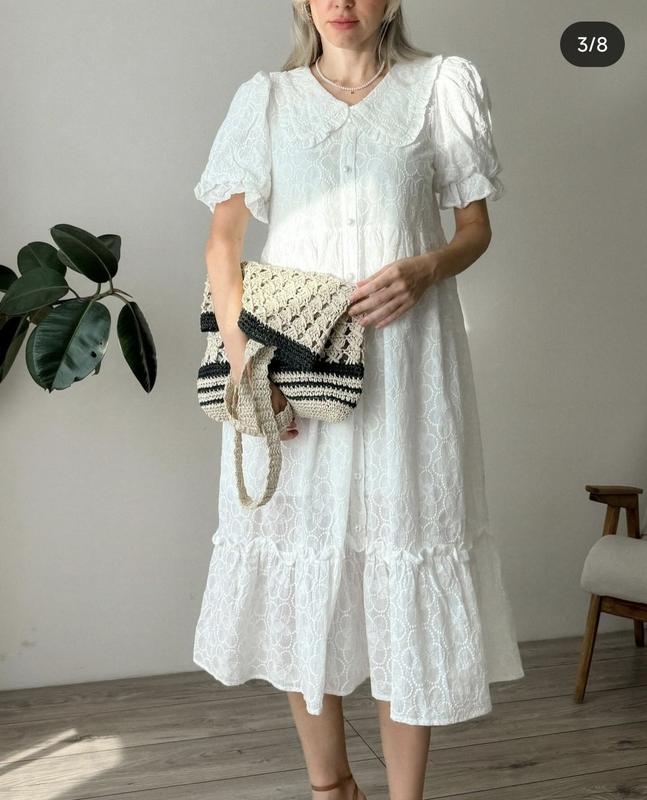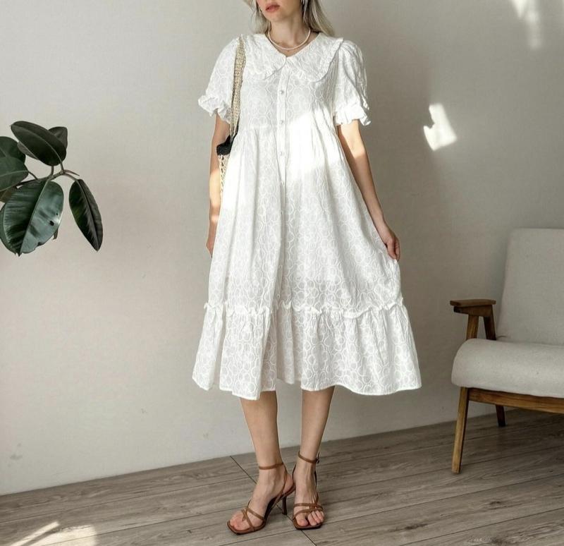 Платье белое с воротничком оверсайз свободное на подкладке с рукавом меди