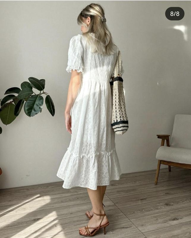 Белое платье с открытой спинкой, белое платье миди, белое белое платье с объемными рукавами