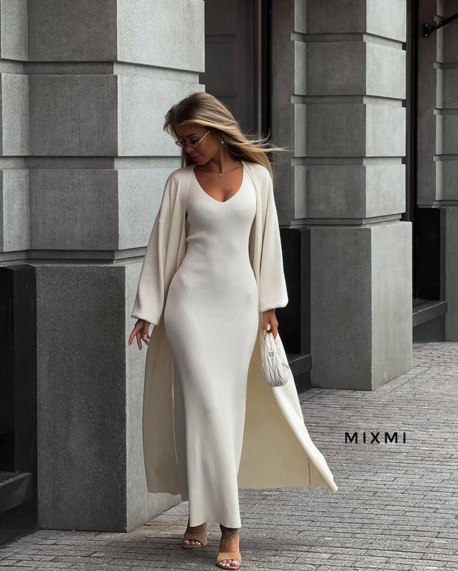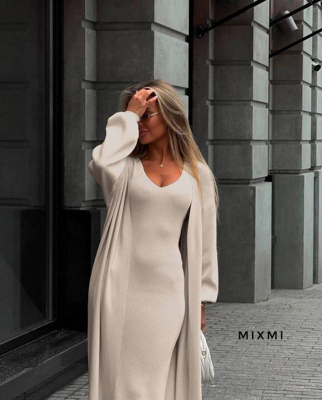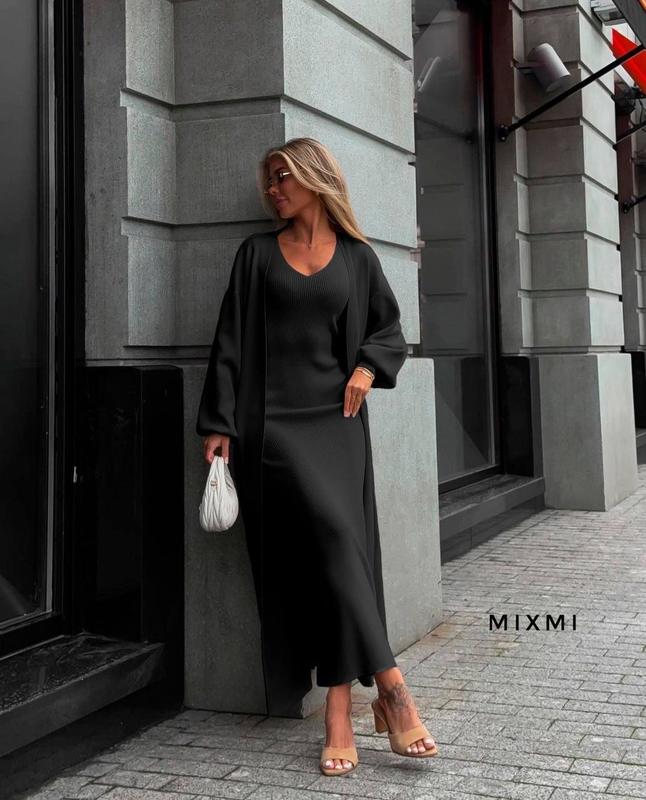ОТРИМАЛИ В КІЛЬКОСТІ🔥Комплект (сукня + кардиган)Мод.9073Размеры: 42-46, 48-50Тканина: сукня рубчик , кардиган двунитка Цвета: молочный, беж, черный, моккоЗамеры на последнем фото📐✏️