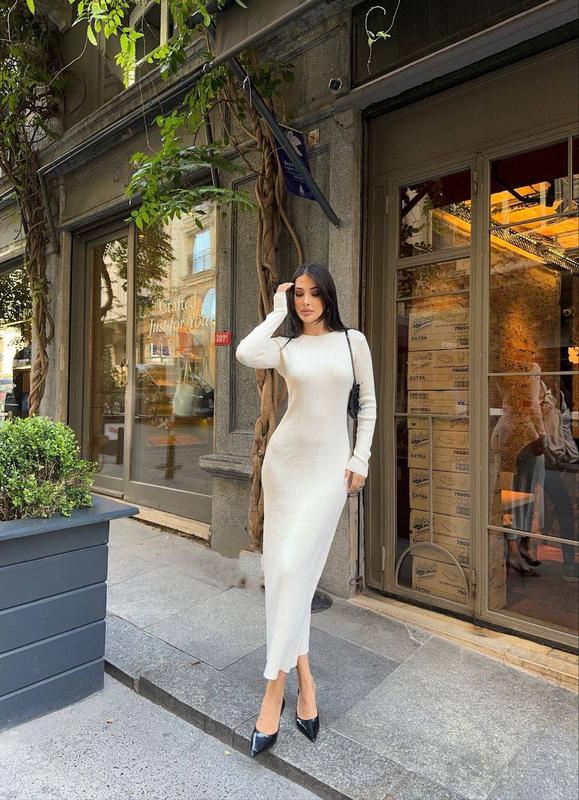 Элегантное платье длины миди. Универсальная модель позволяет создавать эффектные образы различных стилей.